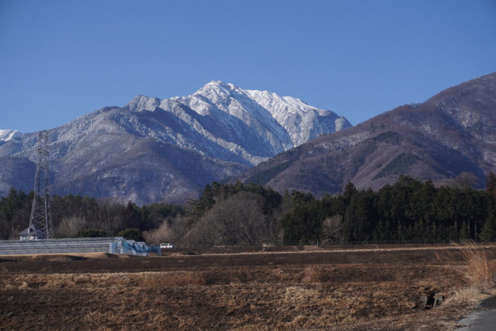 山はまだ雪を被っていて、雪山と梅の花のコラボレーションが見所です。