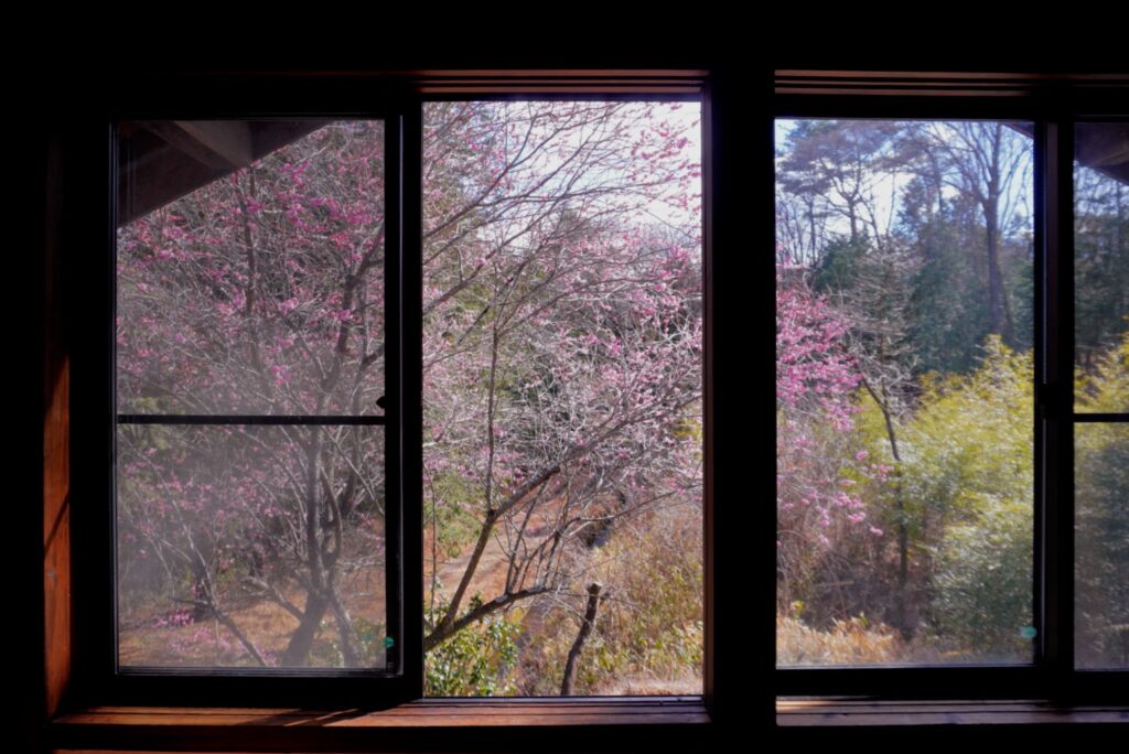 2階の寝室からは同じ目線で梅の花を楽しむことができます。
